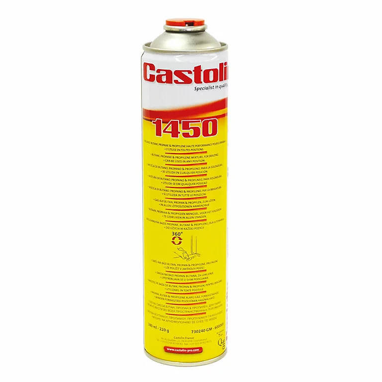 Cartouche de gaz non rechargeable Castolin 1450. Très hautre performance contenant du propane, butane et et propylène. La conception de cette cartouche permet une utilisation en toute position quelque soit la torche utilisée.