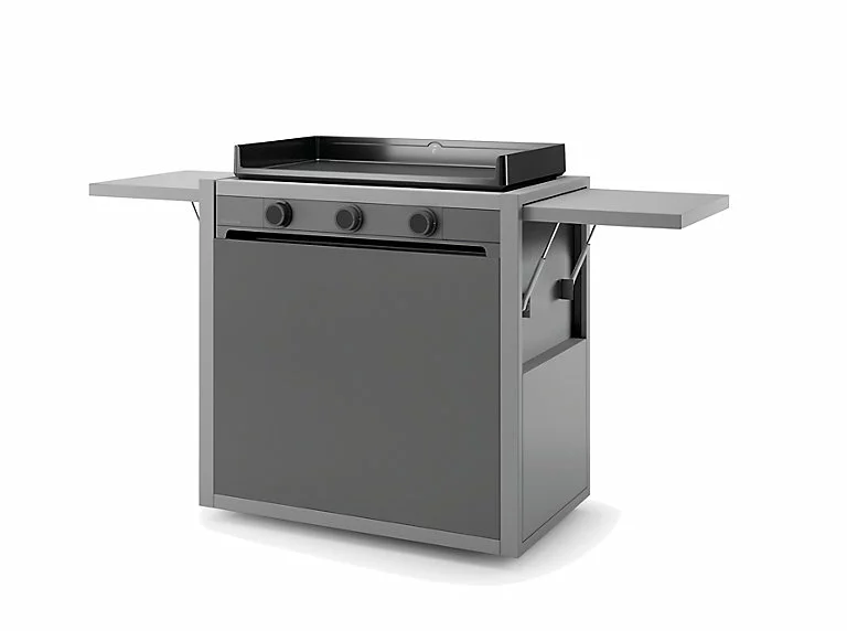 Tablettes rabattables équipées de vérins hydrauliques. 4 roues pivotantes (2 avec freins et 2 sans freins)