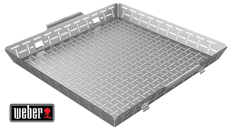 Panier à griller Weber Crafted. Support Weber Crafted requis. La large surface perforée favorise la circulation de la chaleur. Maintient les aliments au plus près de la source de chaleur.