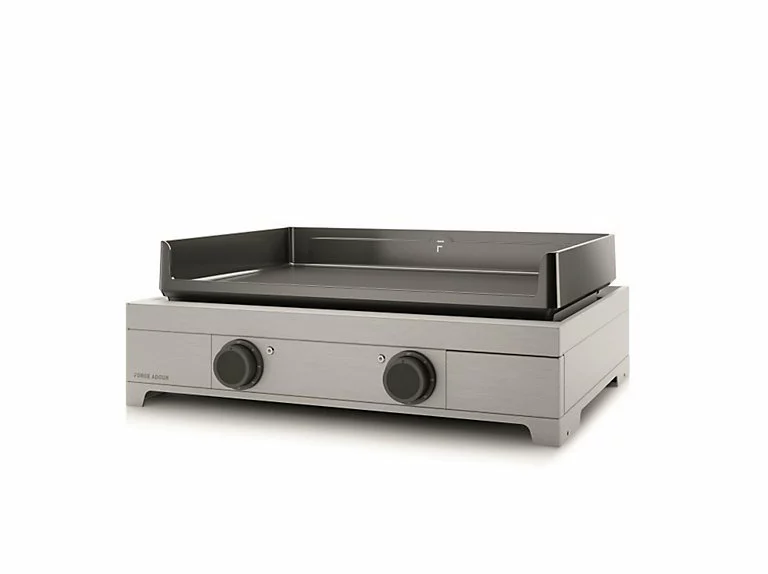 Sobre et élégante: Plaque fonte émaillé forte épaisseur, plancha électrique, récupérateur de graisse intégré dans châssis, surface de cuisson 60,5×42 cm, garantie 15 ans
