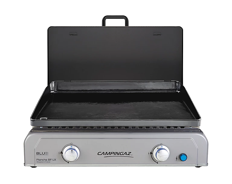 - Technologie Blue Flame : 6 rampes de brûleurs micro-flammes serpentent sous la plaque pour une parfaite répartition de la chaleur
