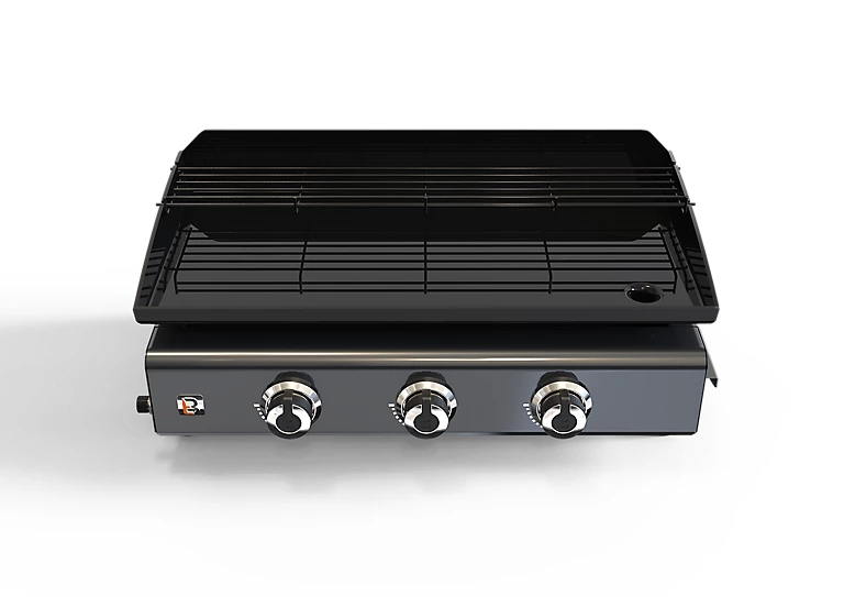 Plancha gaz muni de 3 brûleurs. Dispose d’une surface de cuisson XXL de 67 x 34 cm. L’épaisseur de la plaque de cuisson, en acier émaillé, de 5 mm permet de mieux résister à la chaleur. Les brûleurs ronds en inox sont choisis pour une répartition optimale de la chaleur. L’émaillage de la plaque permet un nettoyage facile. Une puissance remarquable de 7,5 kW.