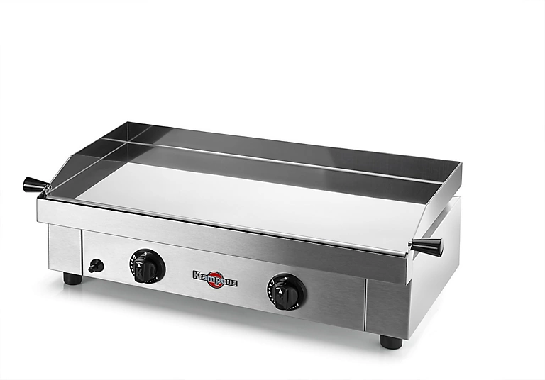 Plancha Saveur gaz 640 x 340 mm puissance 2 x 1600 W châssis et plaque de cuisson inox 2 robinets de sĂ©curitĂ© – allumage piezoelectrique